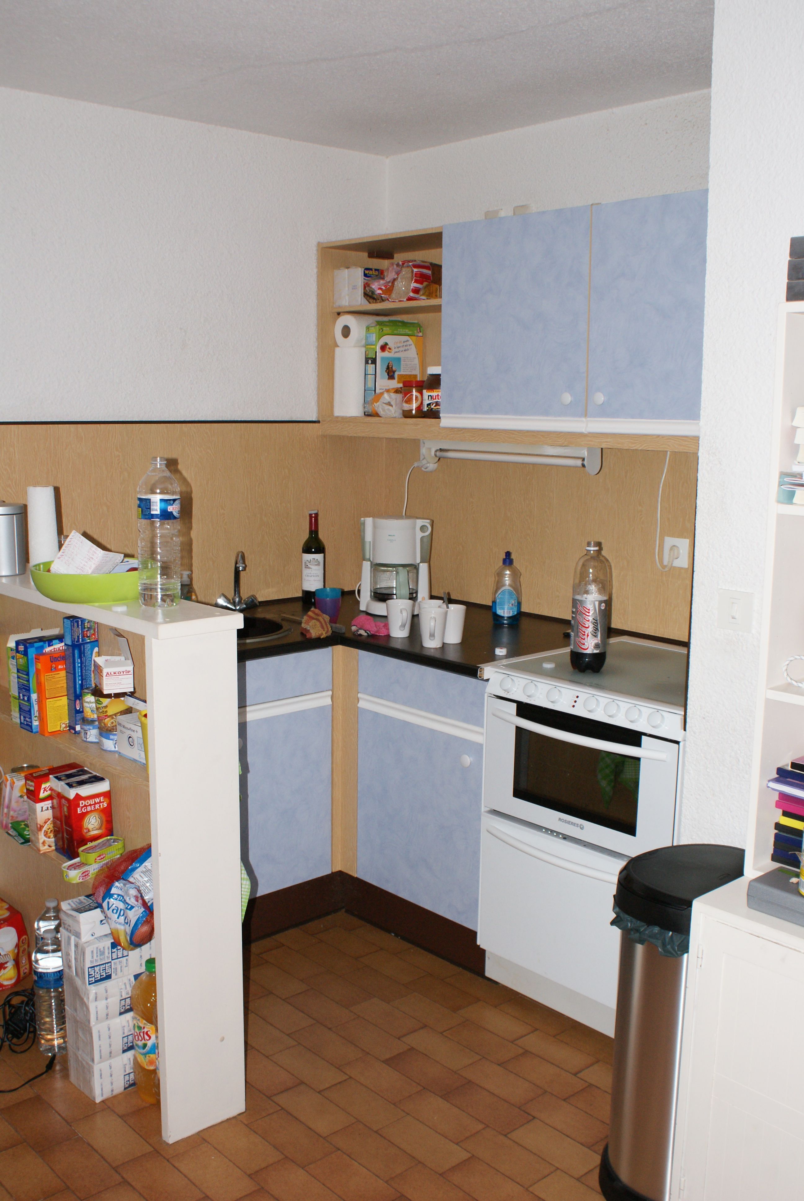 De semi-open hoekkeuken is voorzien van een gaskookplaat, oven, vaatwasser en grote koel-vriescombinatie.